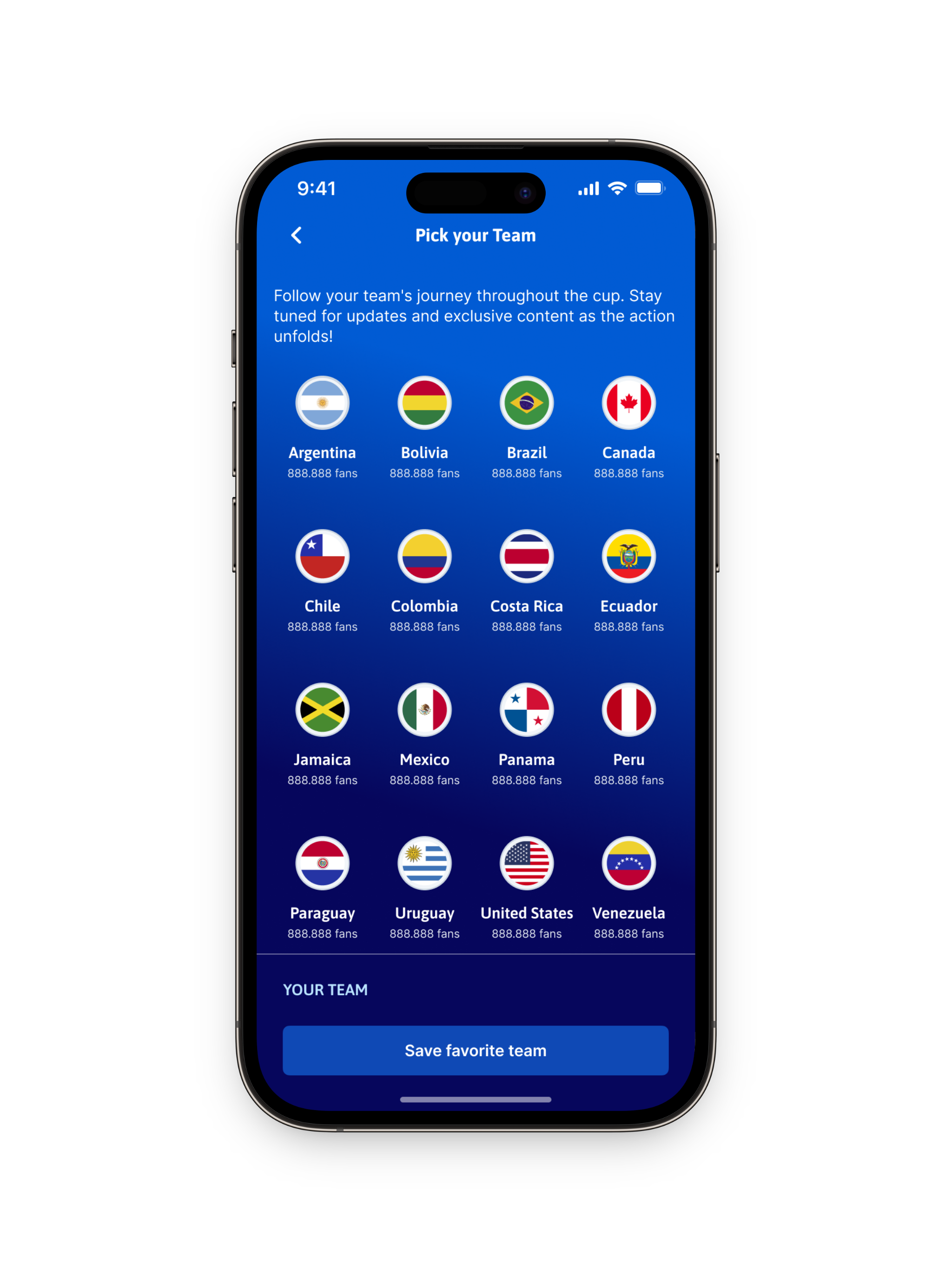 Fans can select their national or just favorite team to unlock a personalized view with tailored updates, match reminders, and key stats focused on what matters most to them.