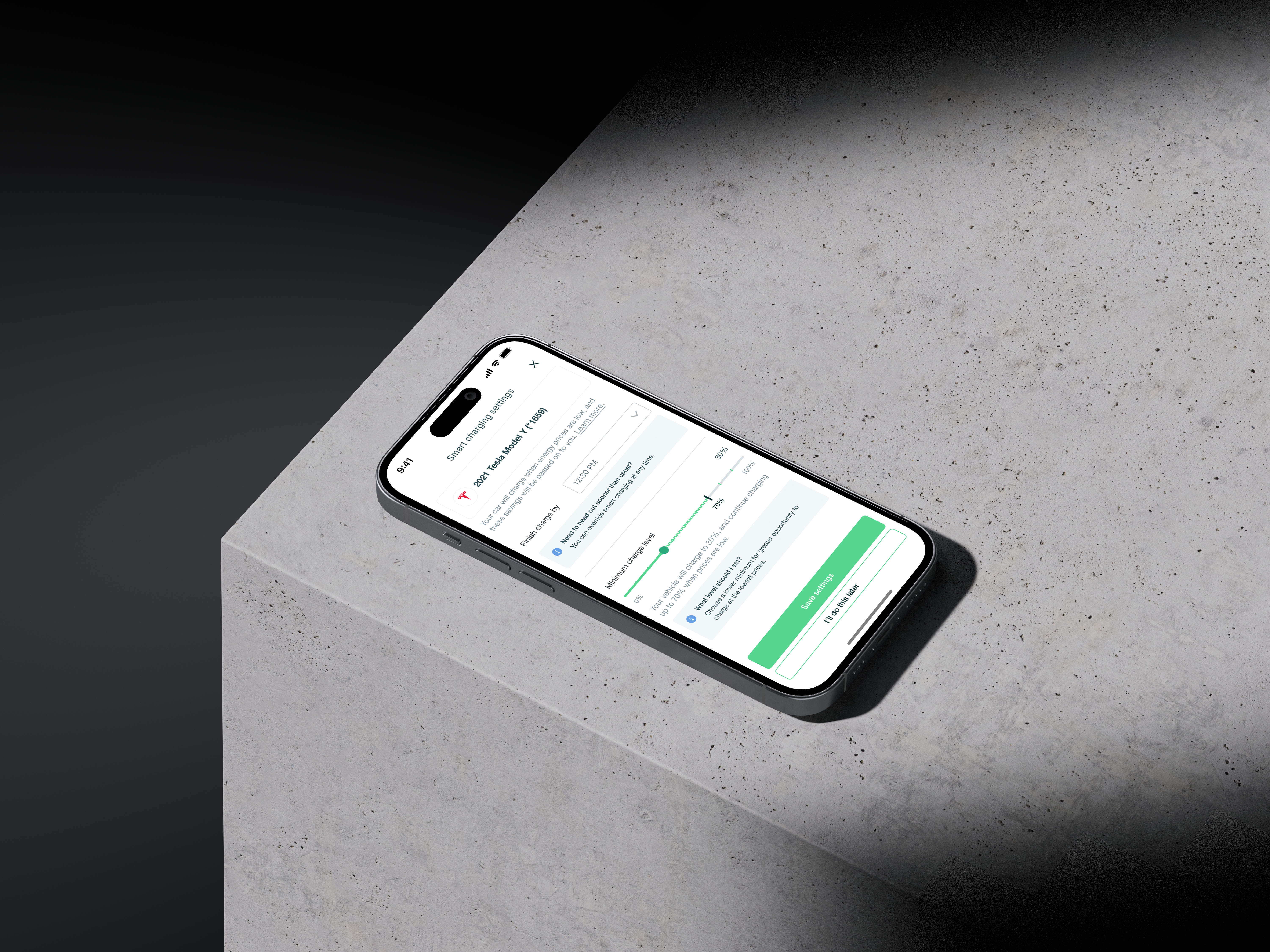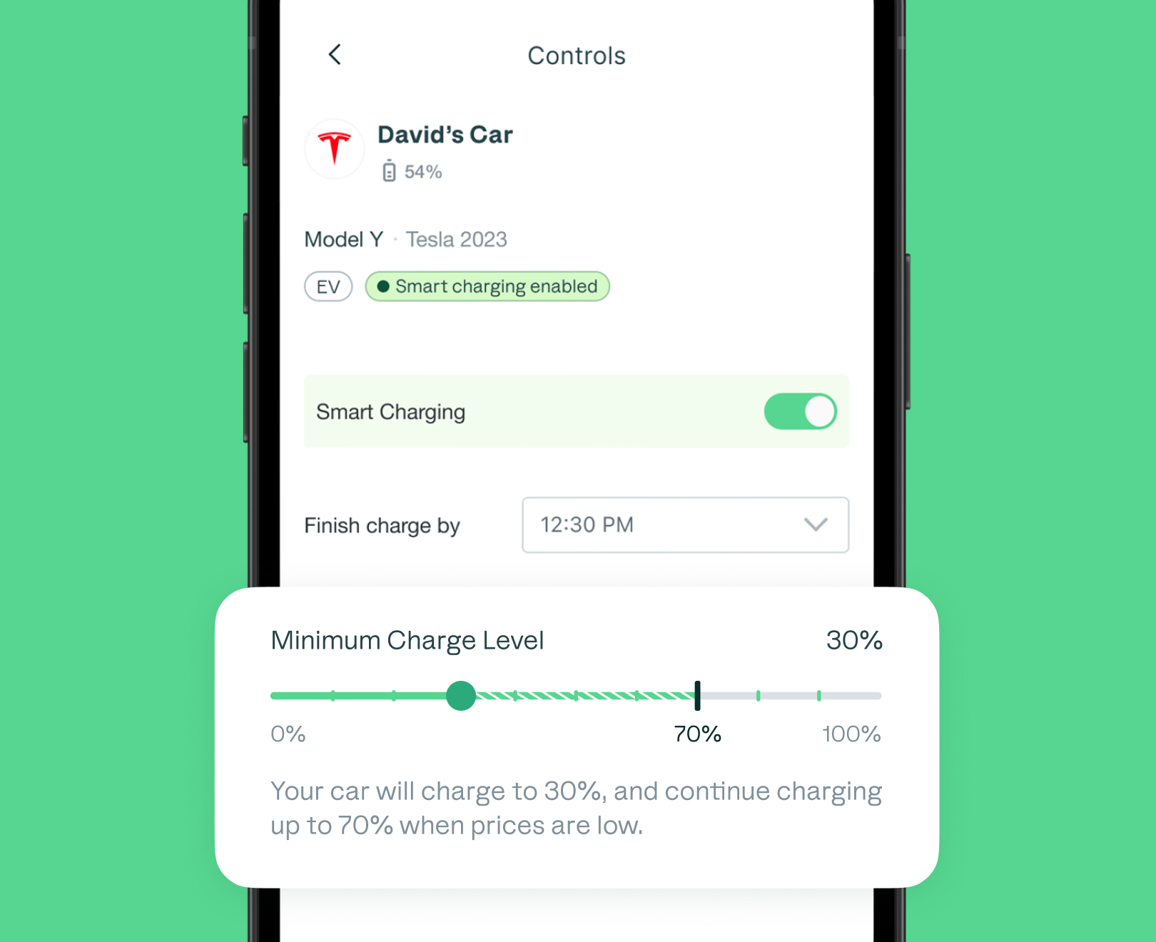 At the heart of the app, Smart Charging optimizes EV charging based on real-time energy prices—charging when power is cheapest and cleanest.